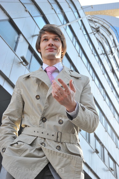 Молодой человек на фоне офисного здания
