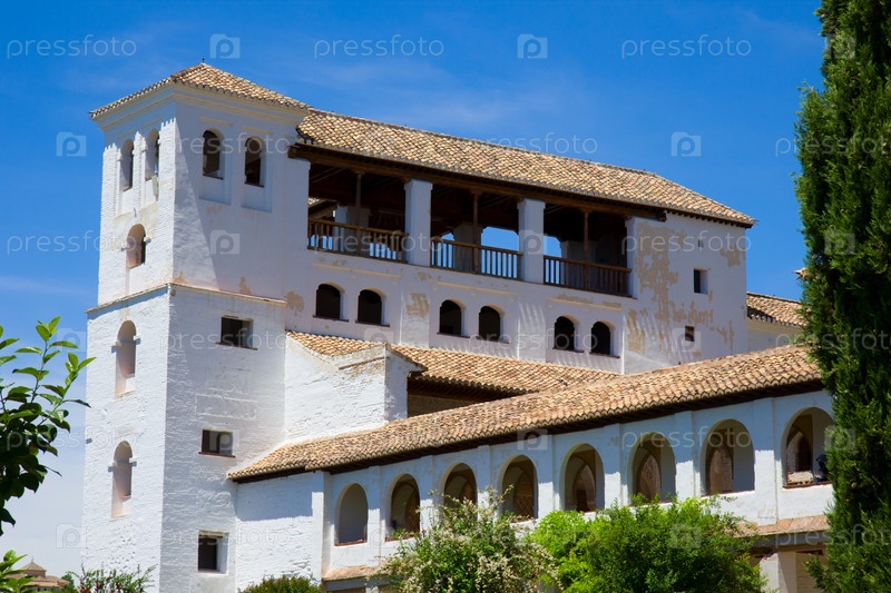 Дворец Альгамбра в садах Хенералифе, Гранада, Андалусия, Испания