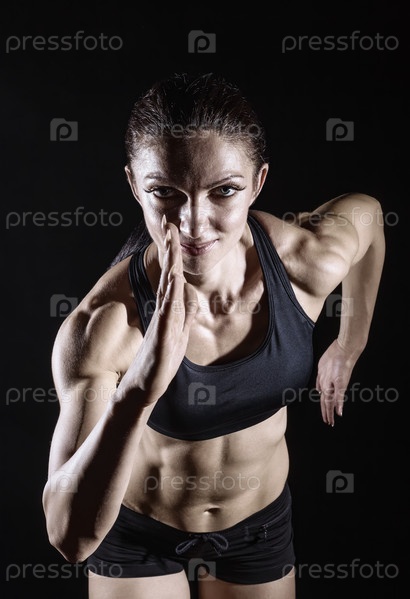 Женщина бежит на темном фоне