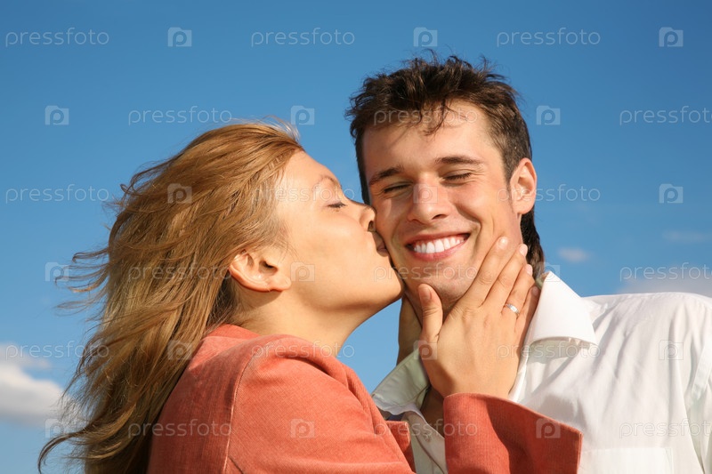 Женщина целует мужчину