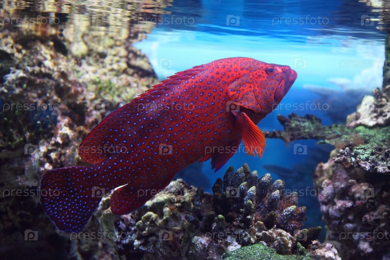 Красная тропическая рыба в аквариуме