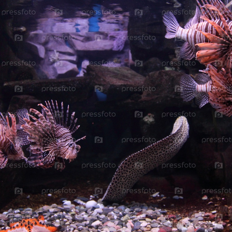 Рыба-зебра и мурена в аквариуме