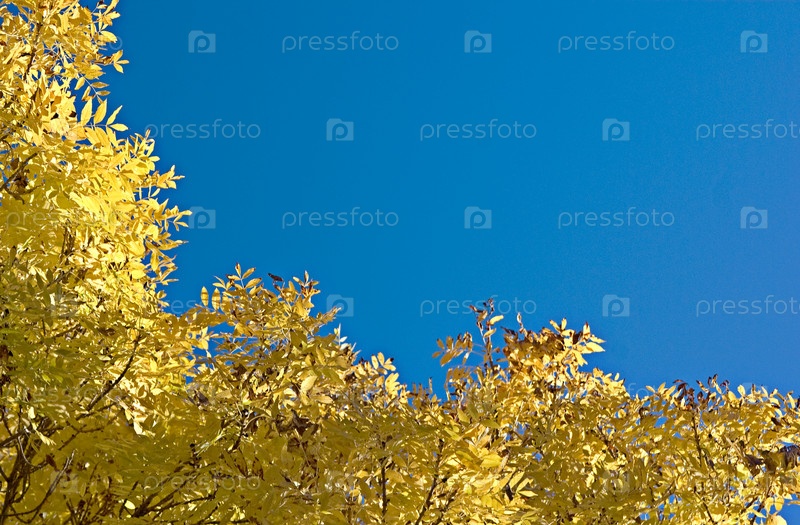 Золотые осенние деревья на фоне синего неба