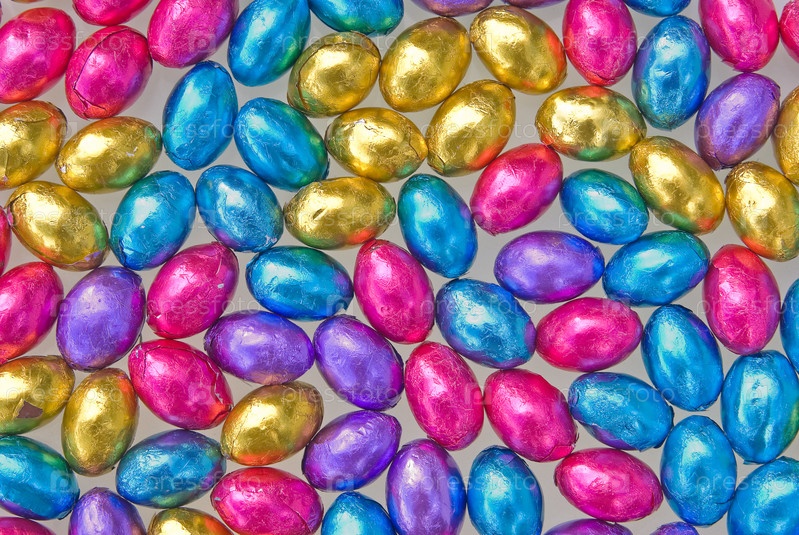 Красивые цветные шоколадные пасхальные яйца на белом фоне