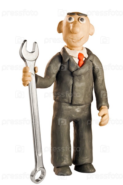 Фигура делового мужчины из пластилина с гаечным ключом в руке