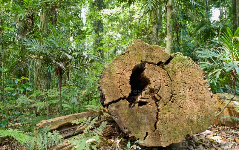 Большое спиленное дерево в тропическом лесу