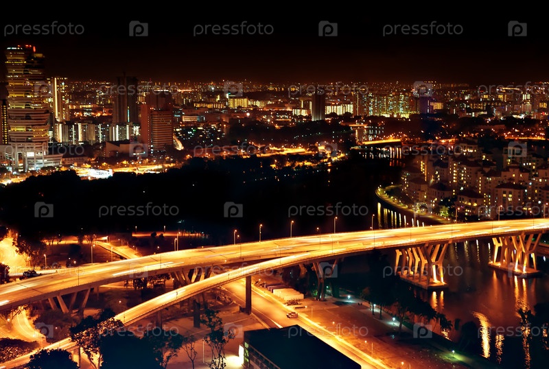 Городской пейзаж Сингапура ночью