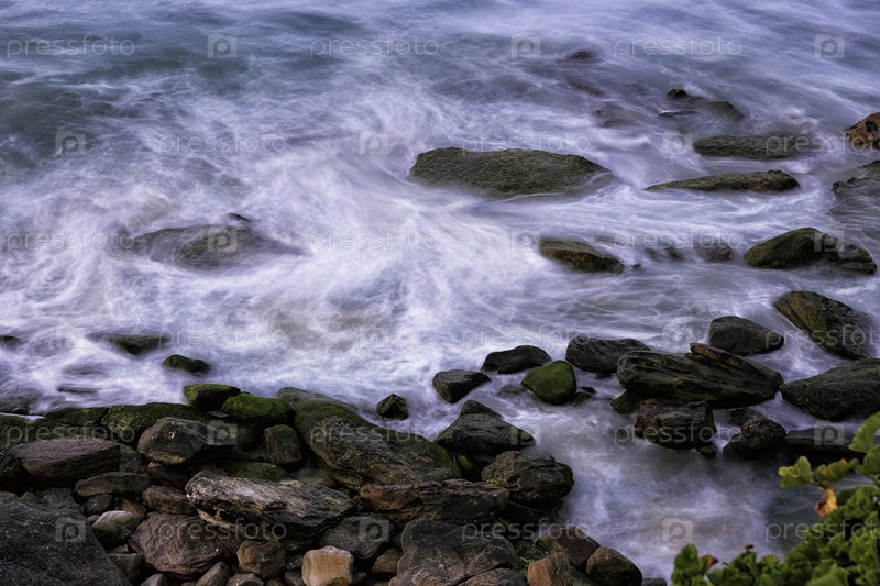 Океанские волны нежно плещутся о камни