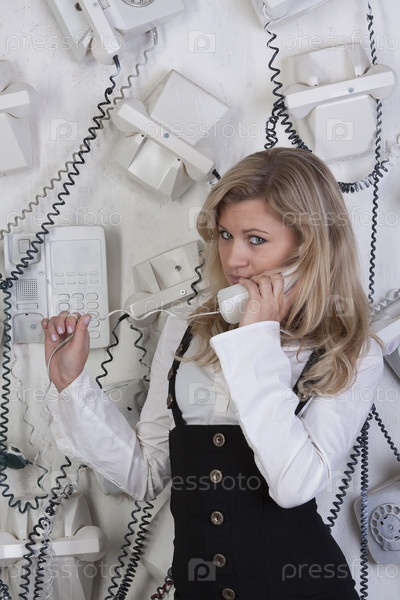 Девушка-секретарь говорит по телефону