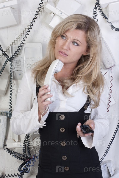Девушка-секретарь говорит по телефону