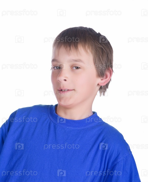 Счастливый мальчик на белом фоне