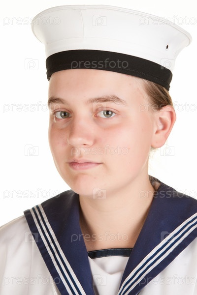 Молодая женщина-матрос, изолированная на белом