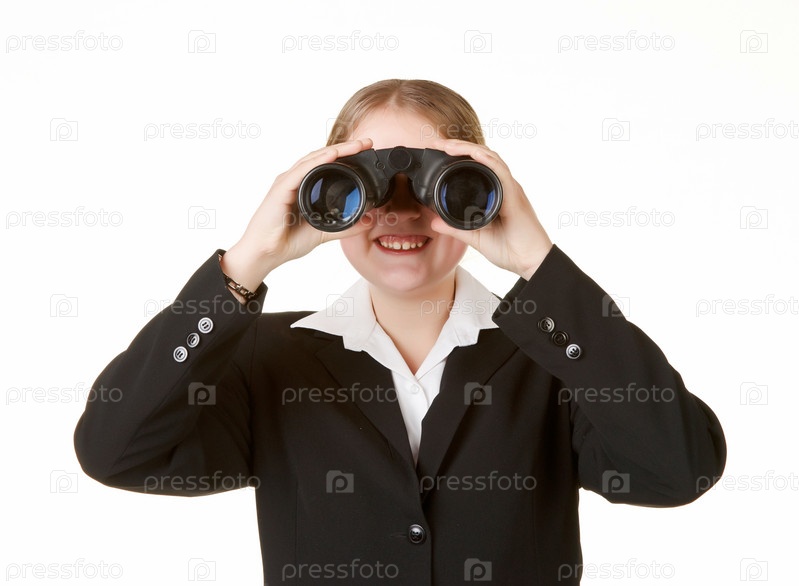 Бизнес-леди смотрит в бинокль