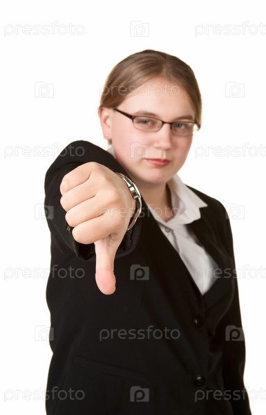 Бизнес-леди с опущенным большим пальцем