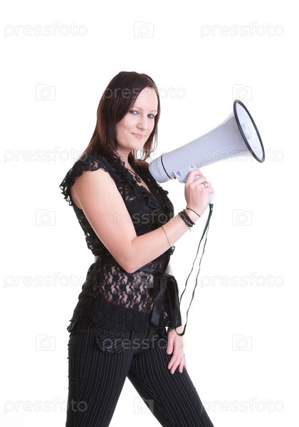 Молодая женщина с мегафоном