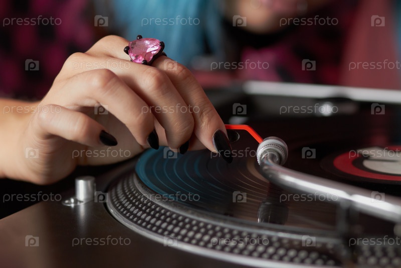 Маникюр не мешает девушке играть музыку на виниле