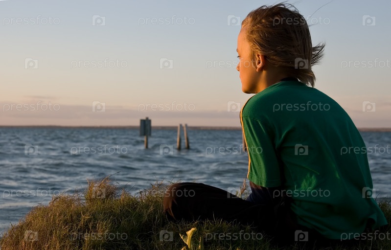 Мальчик мечательно смотрит на озеро