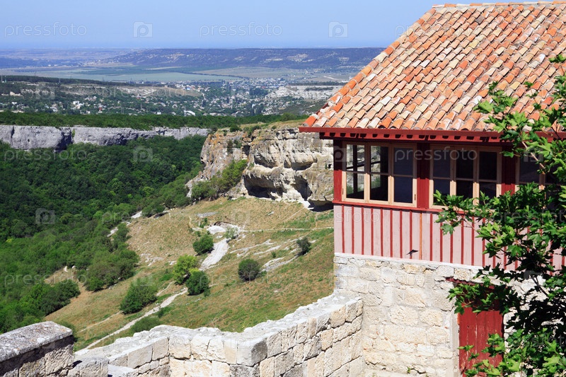 Красивый дом с красной черепичной крышей на самом краю высокого холма