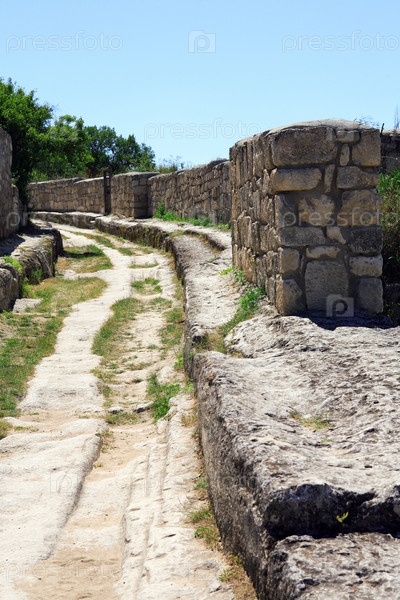 Дорога и каменные стены древнего города караимов, Крым