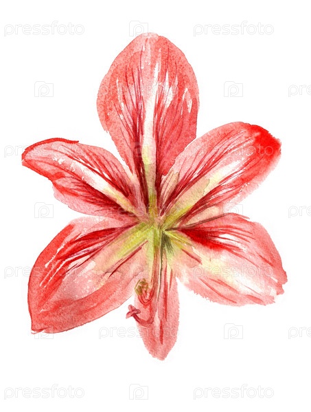 Акварельное изображение красного цветка, изолированное на белом фоне