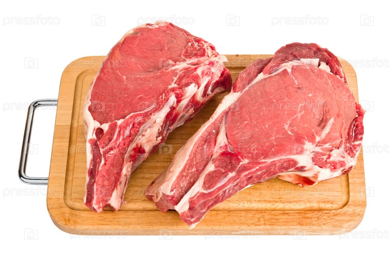 Два куска сырого мяса на деревянной доске, изолированных на белом фоне