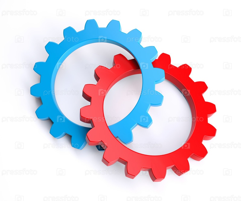 Соединенные синий и красный подшипники, изолированные на белом фоне