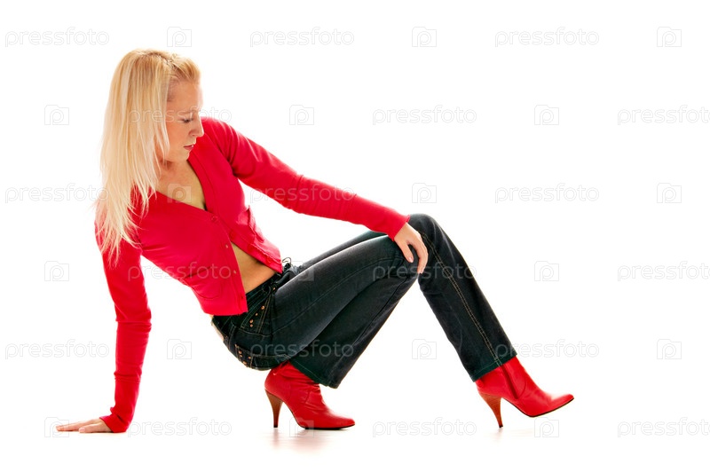 Блондинка в красном на белом фоне