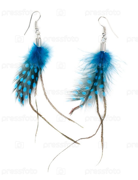Пара женских серег из перьев. Изоляция на белом