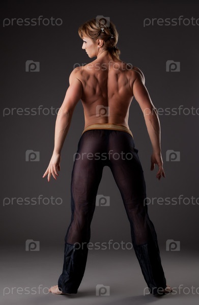 Портрет женщины-бодибилдера топлес в студии