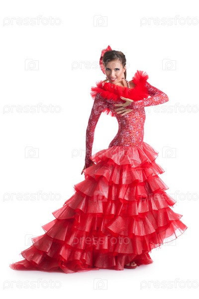 Женщина танцует фламенко в красном костюме