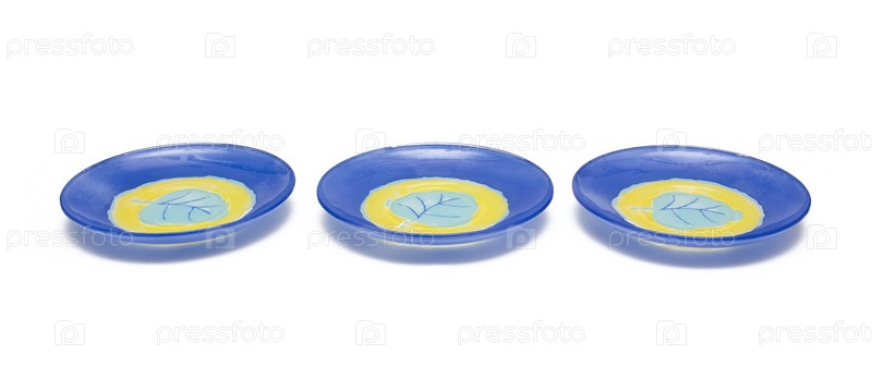 Синие тарелки на белом фоне
