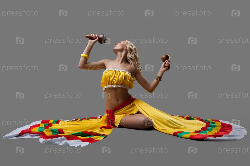 Студийный портрет сексуальной танцовщицы в мексиканском костюме