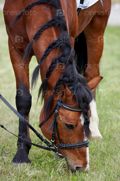 Лошадь пасется на лужайке