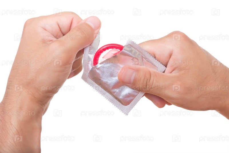 Мужской руки открывают новый презерватив