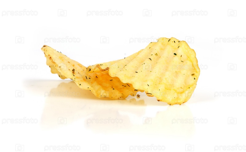 Картофельные чипсы на белом фоне
