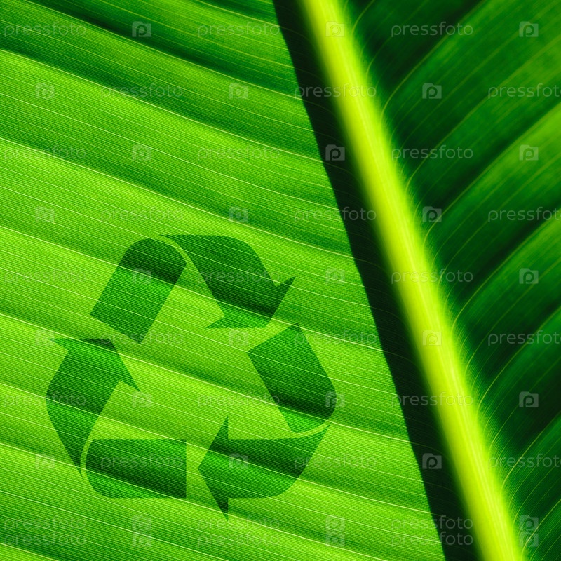 Логотип рециркуляции на зеленом листе