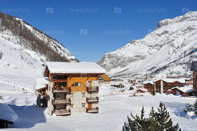 Горнолыжный курорт зимой, Валь-д`Изер, Альпы, Франция