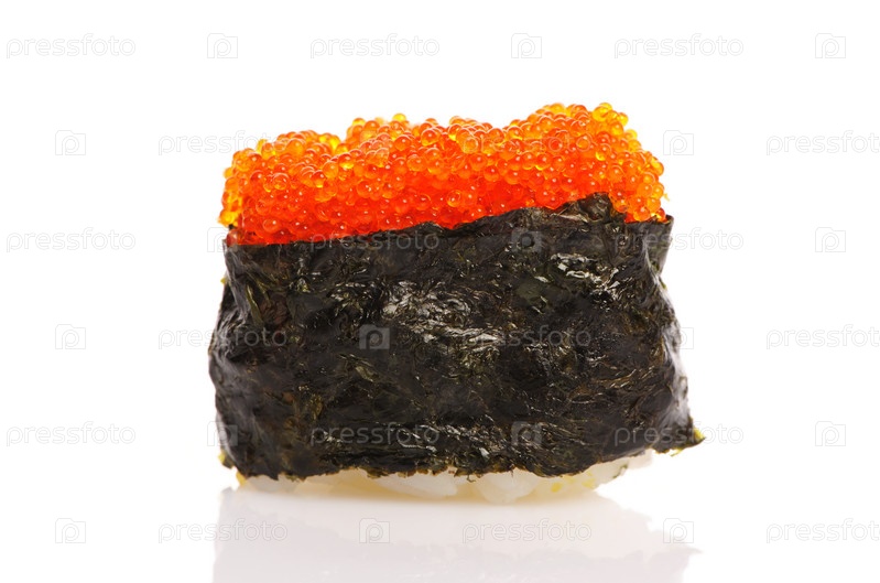 Суши Тобико, изолированные на белом фоне