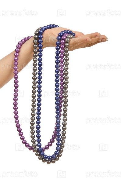 Жемчужное ожерелье в руке на белом фоне
