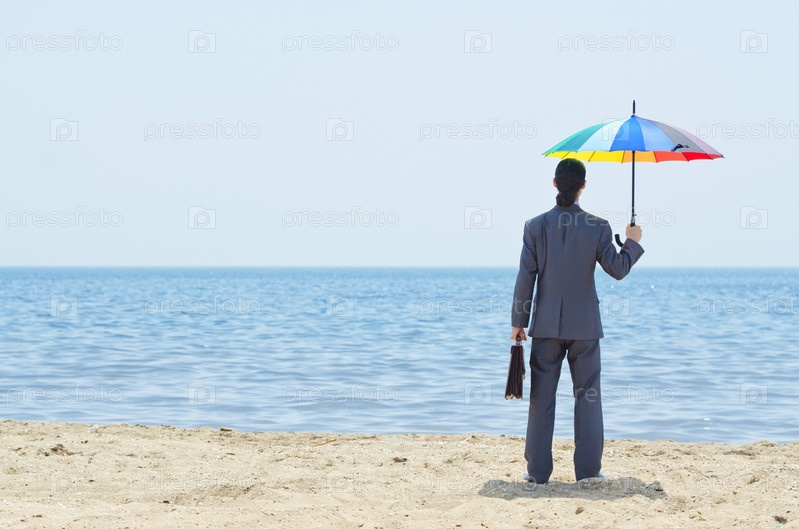 Человек с зонтиком на пляже