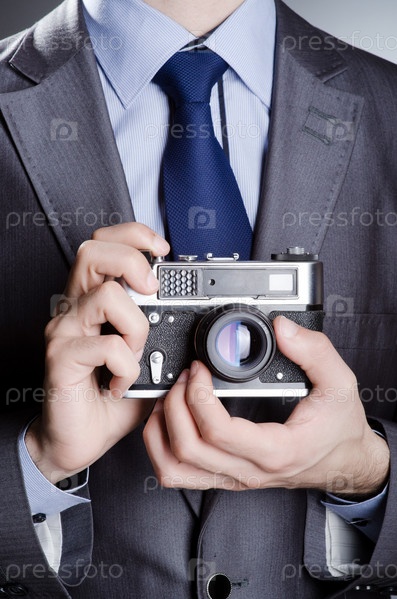 Фотограф со старым фотоаппаратом