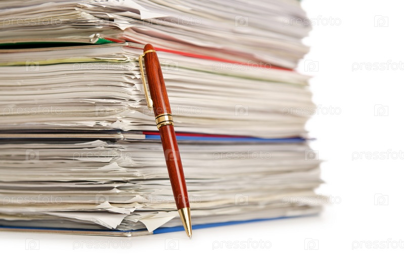 Кипа бумаг на белом фоне