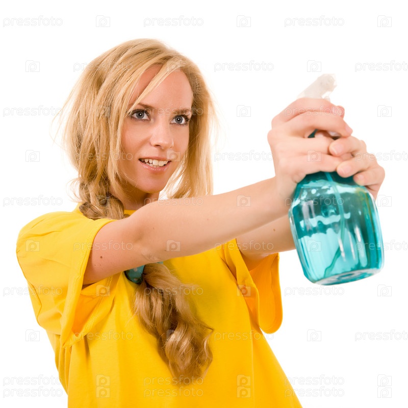 Молодая женщина делает уборку