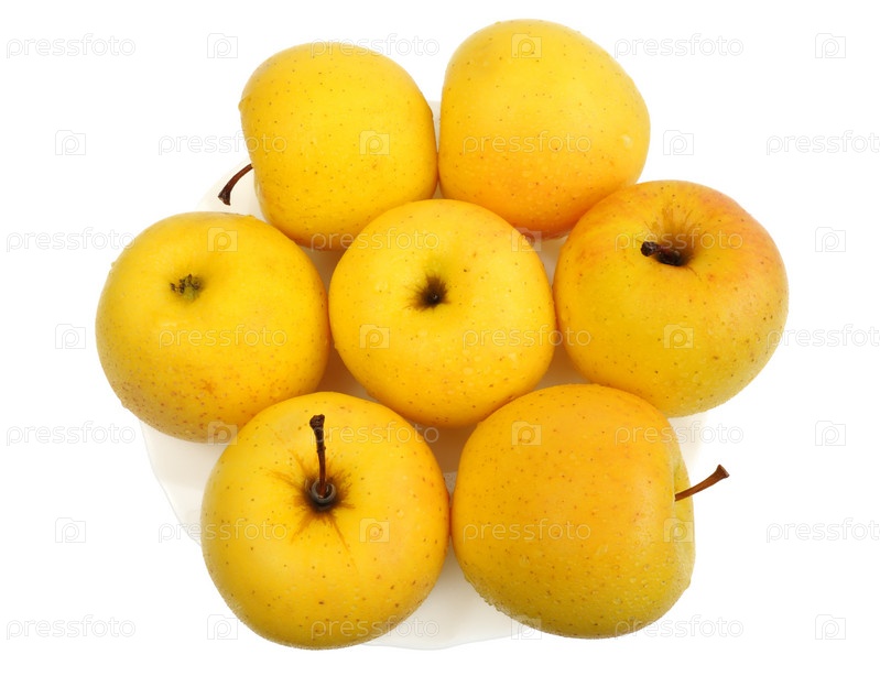 Желтые яблоки на белом фоне