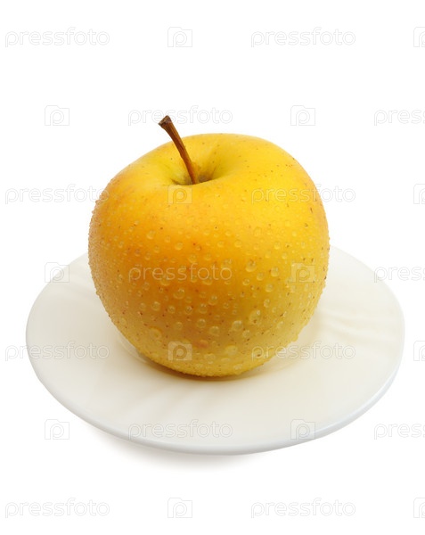 Желтое яблоко на белом фоне