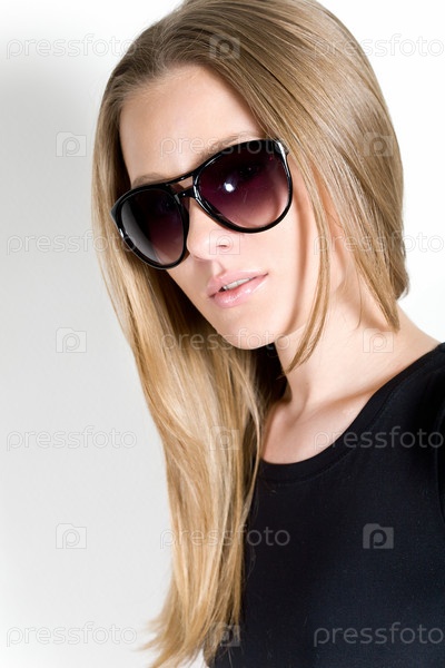 Красивая девушка в очках и черной одежде