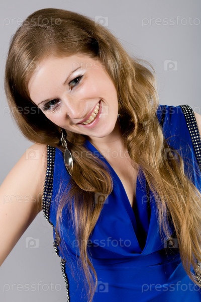 Привлекательная девушка в голубом платье
