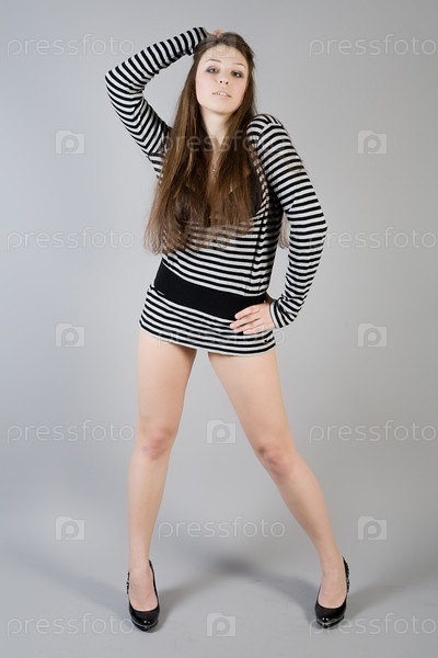 Девушка в коротком полосатом платье