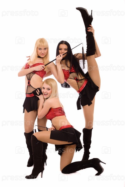 Три молодых танцовщицы на белом фоне