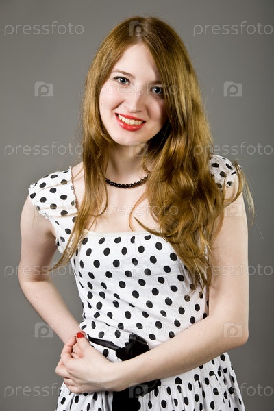 Красивая девушка в платье в горох
